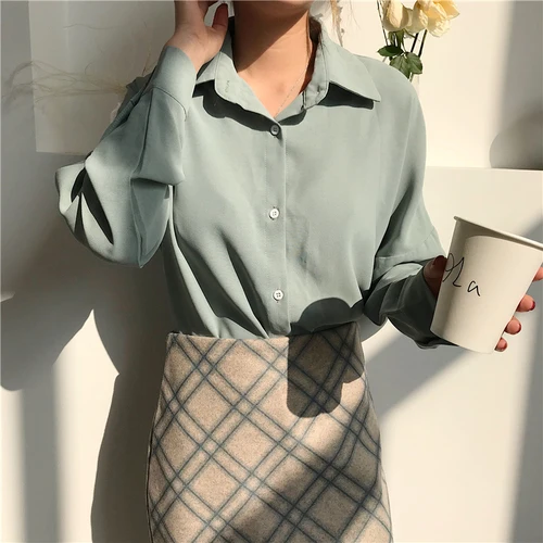 Special Offer 4 farben 2019 frühling koreanische chic lose chiffon shirts frauen einfarbig dünne sonnenschutz langarm blusen frauen (b8383) Discount 22% Today!