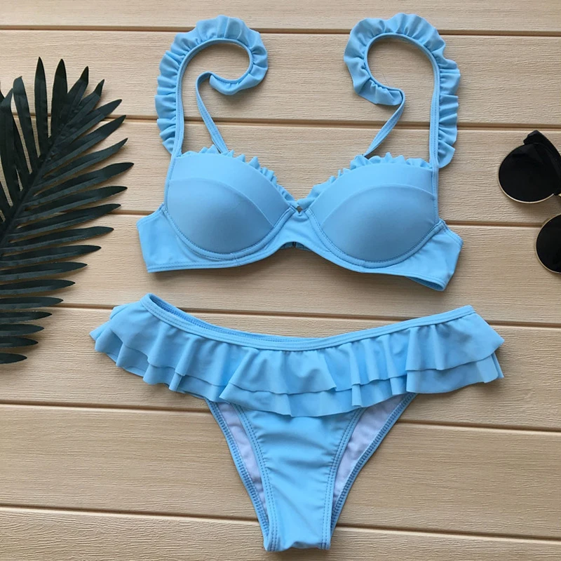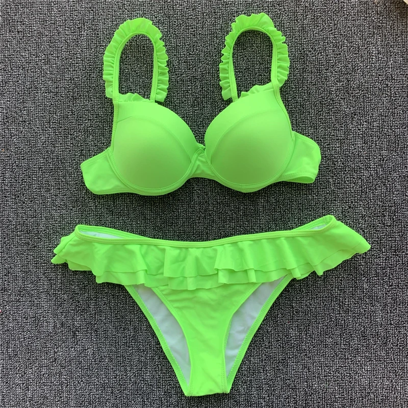 Special Offer Sexy brazi Bikinis Neon Grün Bademode 2019 frauen Badeanzug Push Up Badeanzug Biquini Rüschen Bikini Sommer Weibliche Strand tragen Discount 50% Today!